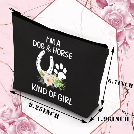 Dog Lover Gifts Horse Makeup Bags for Women Teen Girls I'M a Dog and Horse Kind of Girl Paw Print Horseshoe Gift (Dog Horse Girl Blu)